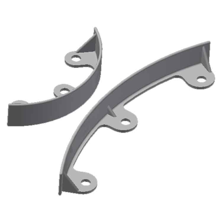 For bi-folding applications with doors of any thickness. Placed in the middle of the opening, these two malleable iron pieces (one 18" wide the other 10-3/4" wide) guide the lead edge of the doors as the slide-fold into the closed position. On doors that are opening OUTWARD place the long piece on the inside and the short piece on the outside of the doors. NOTE: For woods doors it is recommended that #102p136 bumper shoes are used on the lead edges of the door to prevent damage when the doors come in contact with this center floor guide.