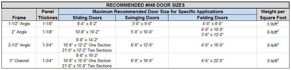 - • Doors over 4' in width have additional "T" bars welded both vertically and horizontally inside the frame to maintain rigidity.