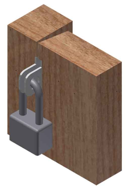• Padlock together a swing door to a jamb.