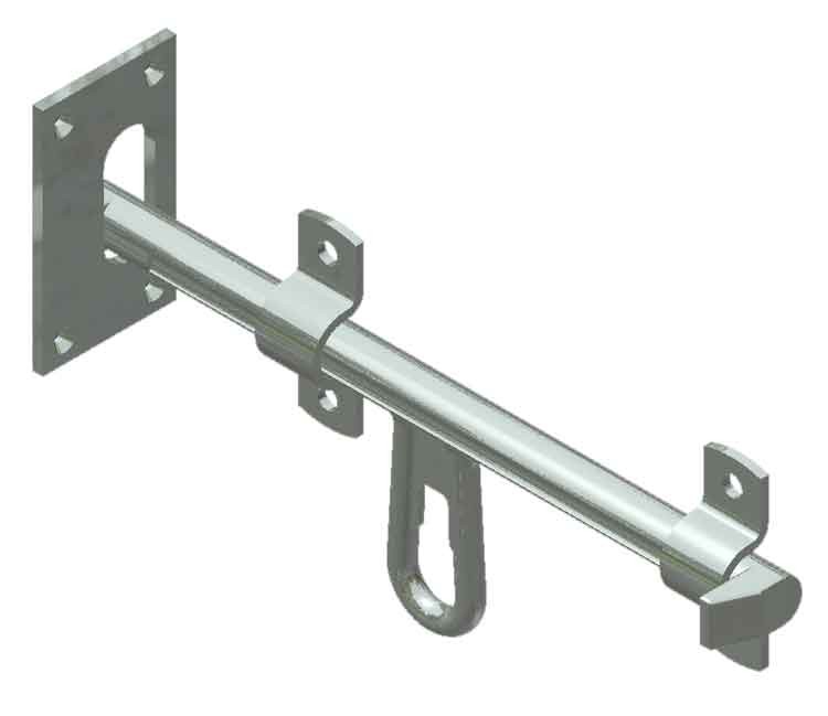 Material: Latch Bolt, malleable iron, powder coated. Keeper and guides, clear zinc plated steel.