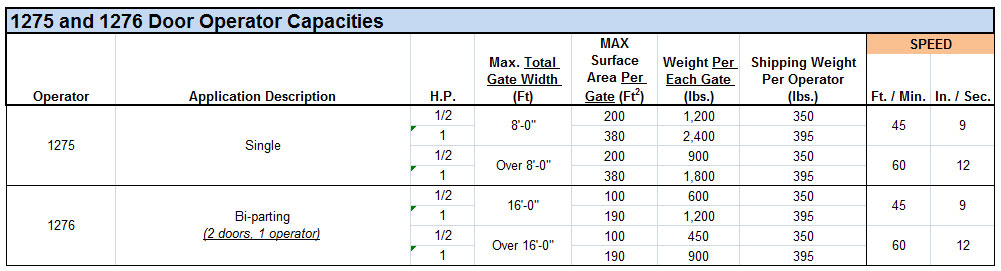 #1275 designates #1265 operator with cover for a single sliding application, while #1275 is a #1266 operator with cover for a bi-parting door application.