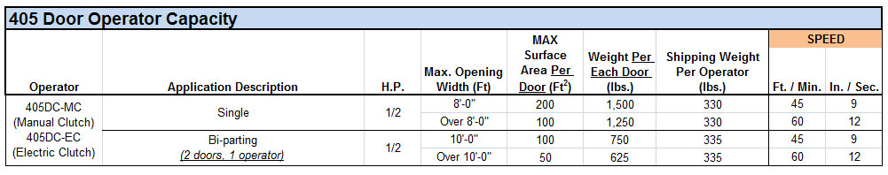 Designed for hard usage in commercial and industrial applications with heavy traffic. The units are available in 1/2 and 1 hp sizes.
