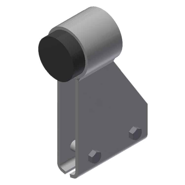This stop clamps to the #CRR20 #20-lb rail for a bottom roller. The rubber stop comes in contact with the edge of the door.