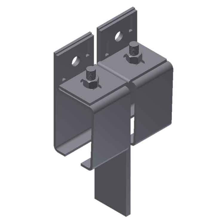 Provides track support and a door stop at the center of sliding bi-parting door applications.