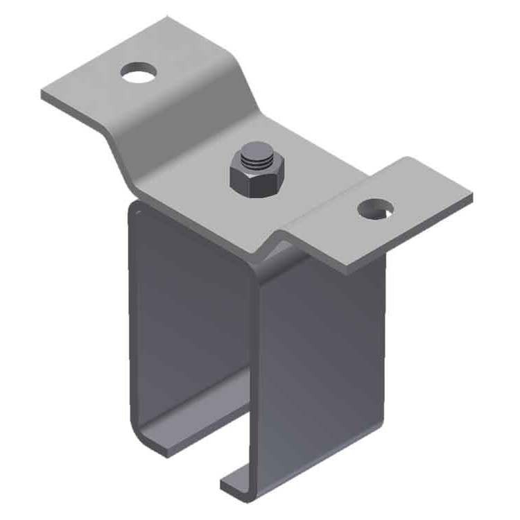 These brackets allow the track to be mounted to the underside of a structural I-beam.