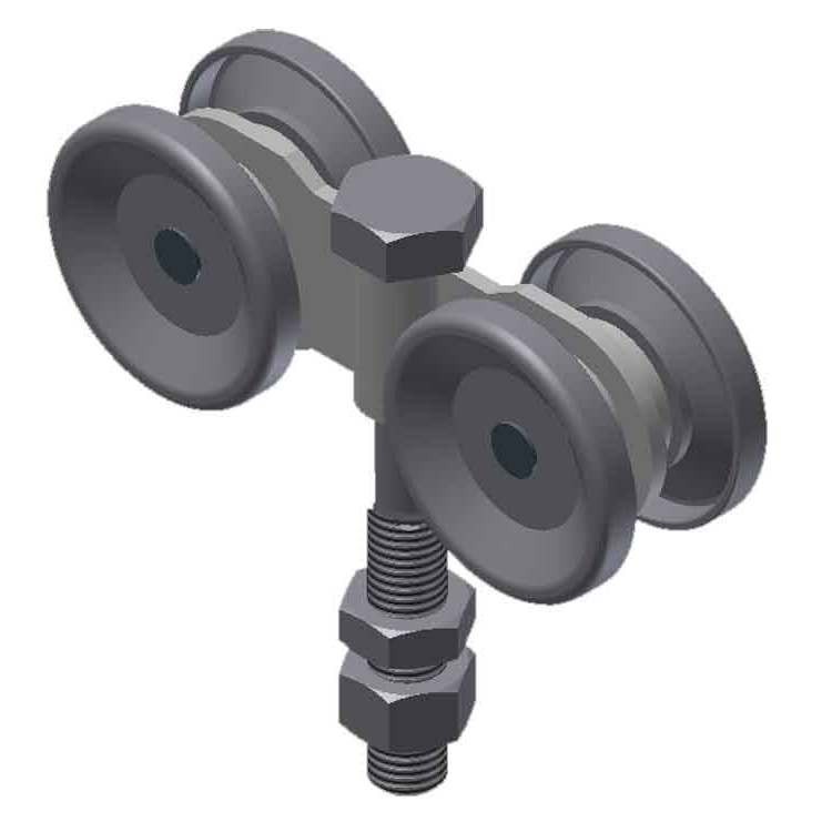 A truck is a wheel assembly with an adjustable bolt called a pendant bolt. The pendant bolt of the truck assembly can be directly attached to the top of a metal door without the use of a top plate, provided sufficient reinforcing has been installed in the top of the metal door. When used with a top plate, a truck can be attached to the top of a wood or other types of doors.