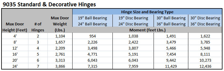 (Width of Door in feet) X (Weight of Door in pounds) = Calculated "moment" value.